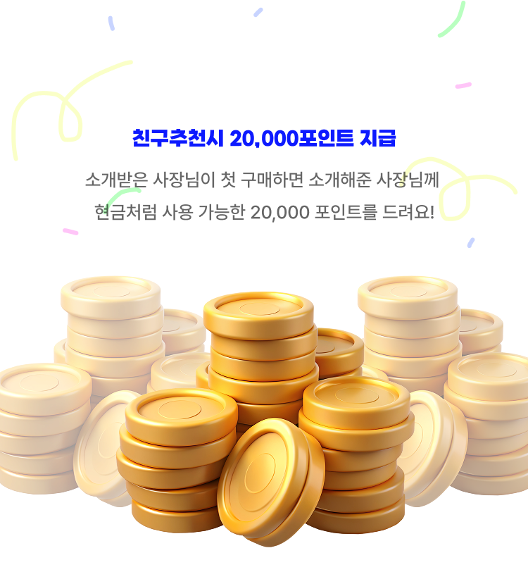 - 추천 이벤트 포인트(2만)는 가입 후 소개받은 사장님의 첫 주문 구매확정 시 지급됩니다.