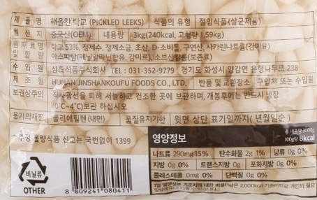 해울찬 락교(3S/팩포장) 3kg