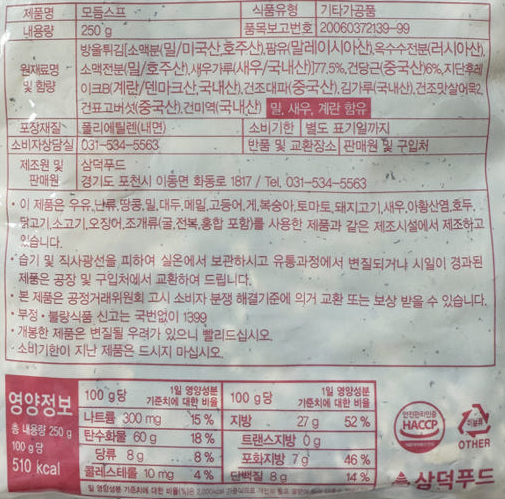 삼덕 모듬스프(우동건더기) 250g