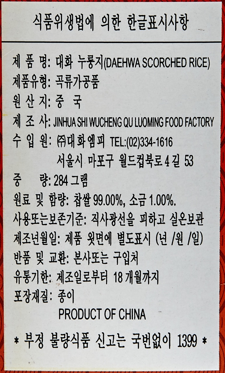 대화 찹쌀누룽지 284g