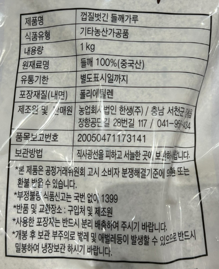 한생 들깨가루(박피) 1kg