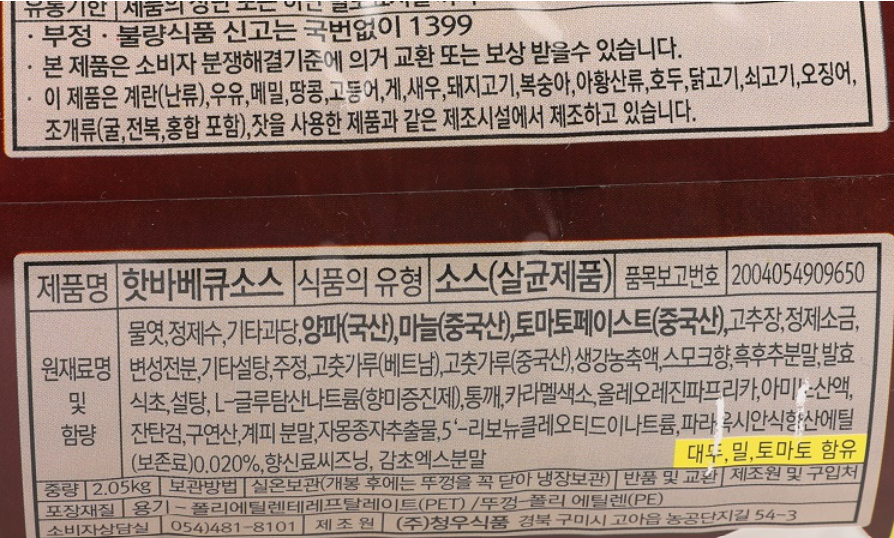 청우 핫바베큐소스 2.05kg