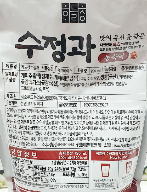 하늘청 수정과농축액(5배수) 790mL