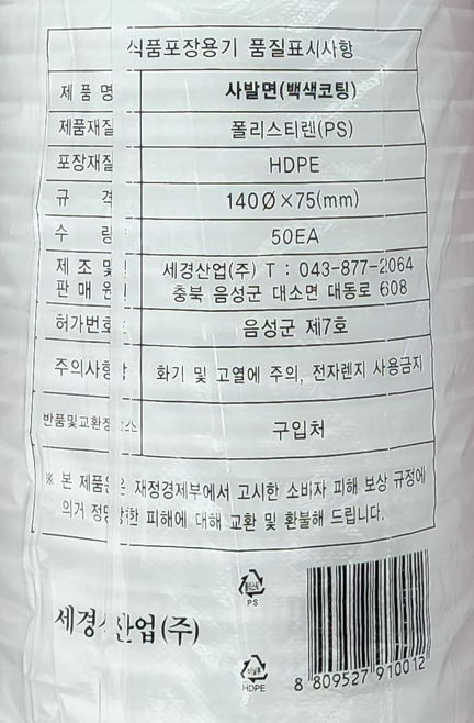 일회용기(세경_사발기_140Φ*75mm_50입)