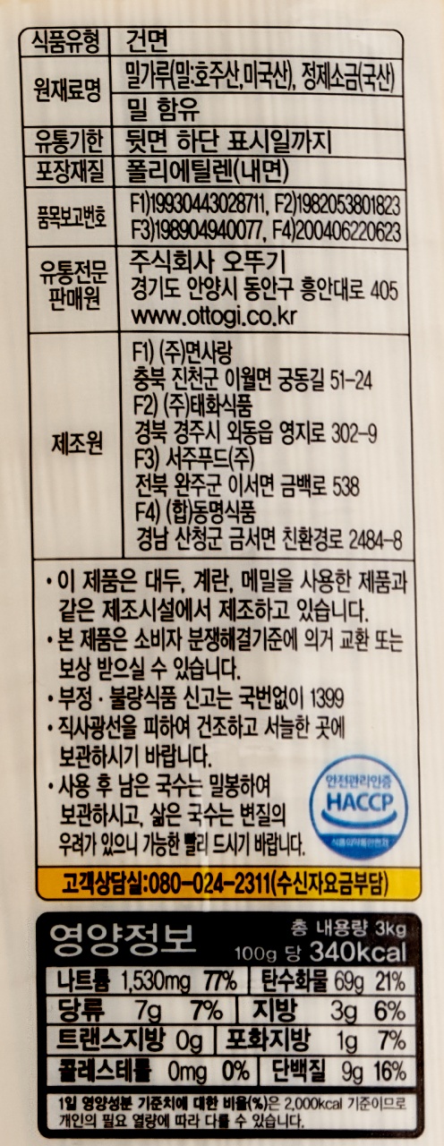 오뚜기 중면국수 3kg