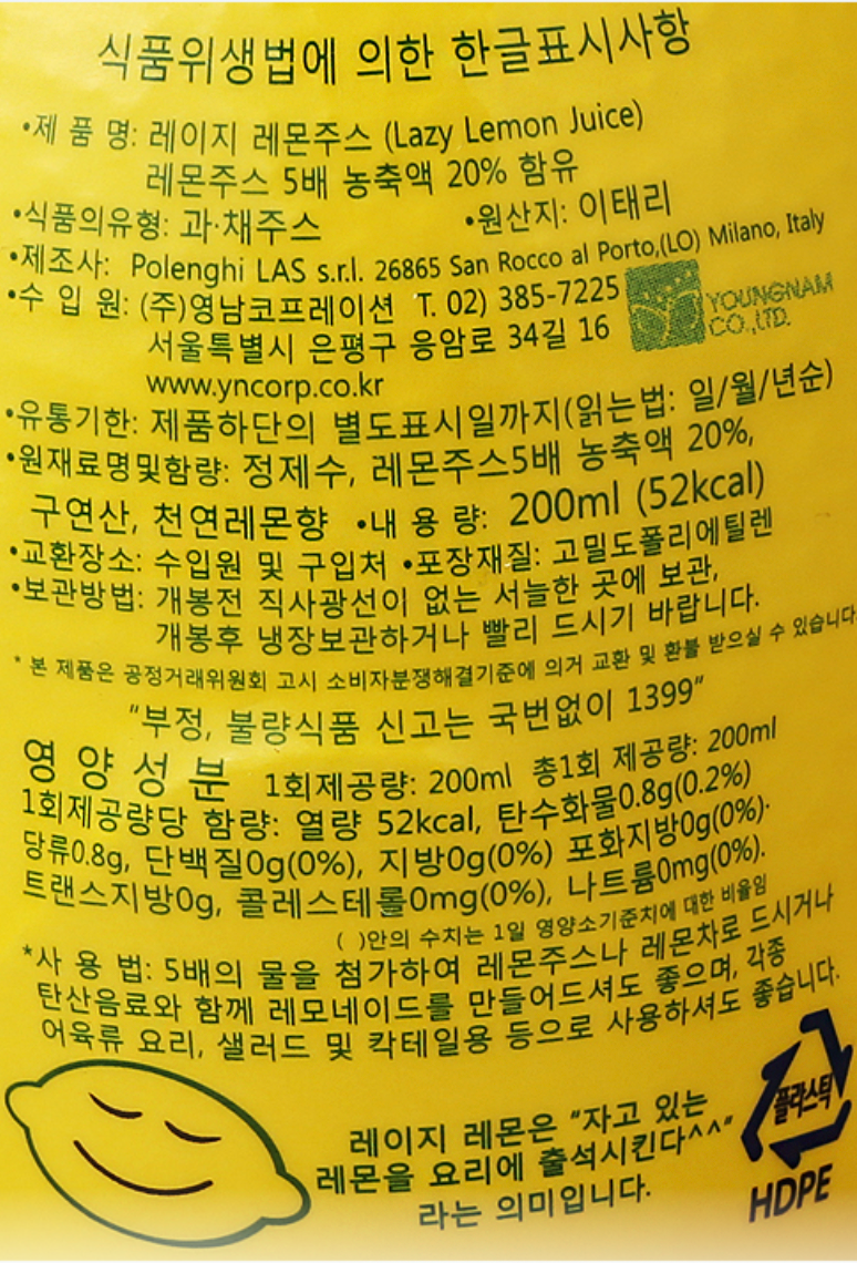 레이지 레몬농축액 200mL