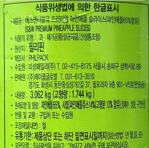 S&W 파인애플캔(슬라이스) 3kg