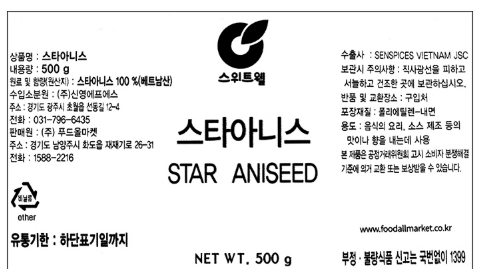 스위트웰 스타아니스(오향/팔각/홀) 500g
