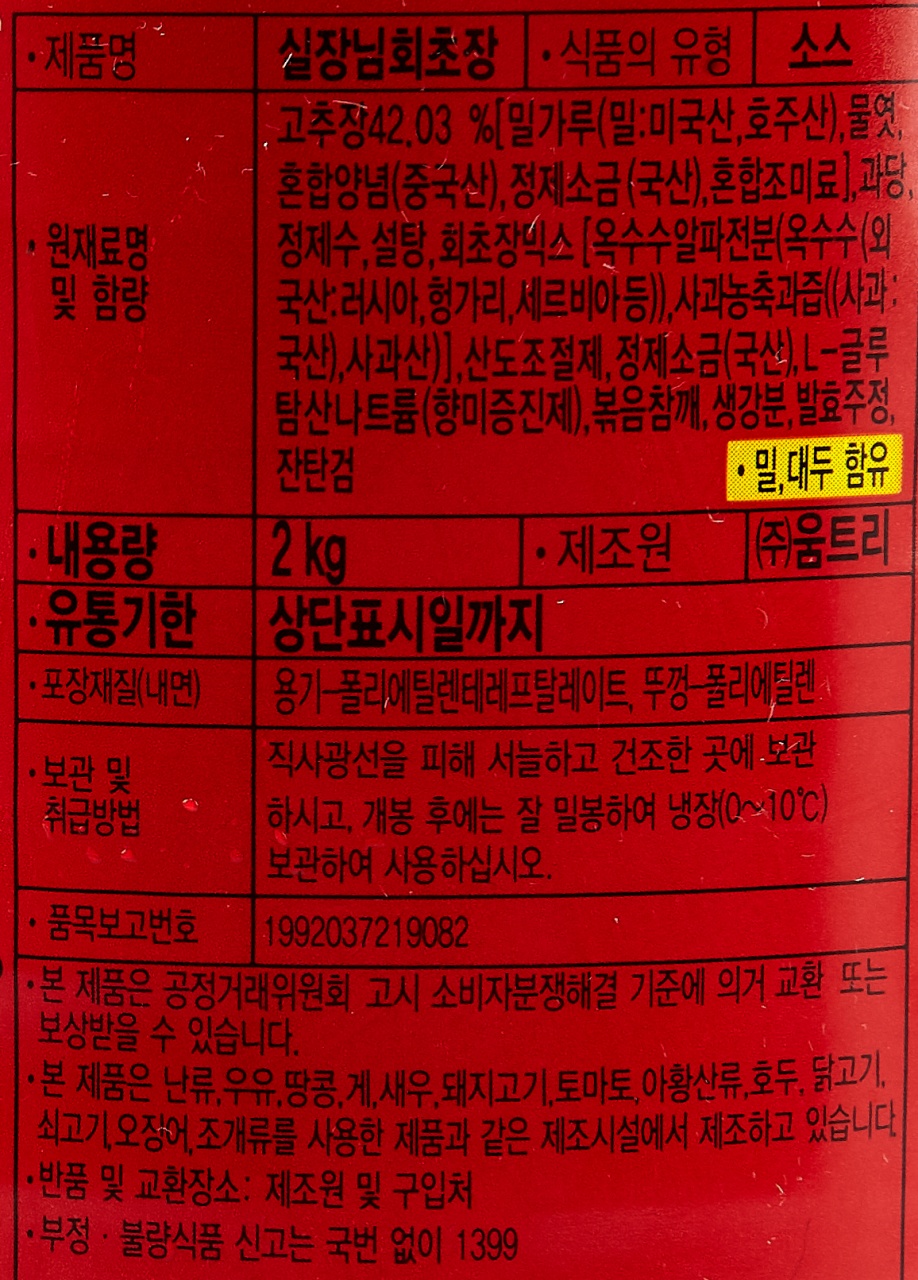 움트리 실장님 회초장 2kg