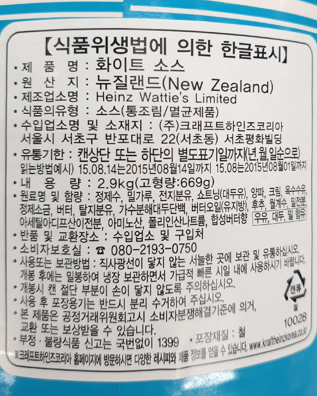 하인즈 화이트 스파게티소스 2.9kg