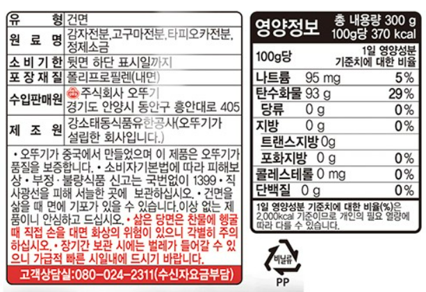 오뚜기 넓은당면(중국식 18mm) 300g