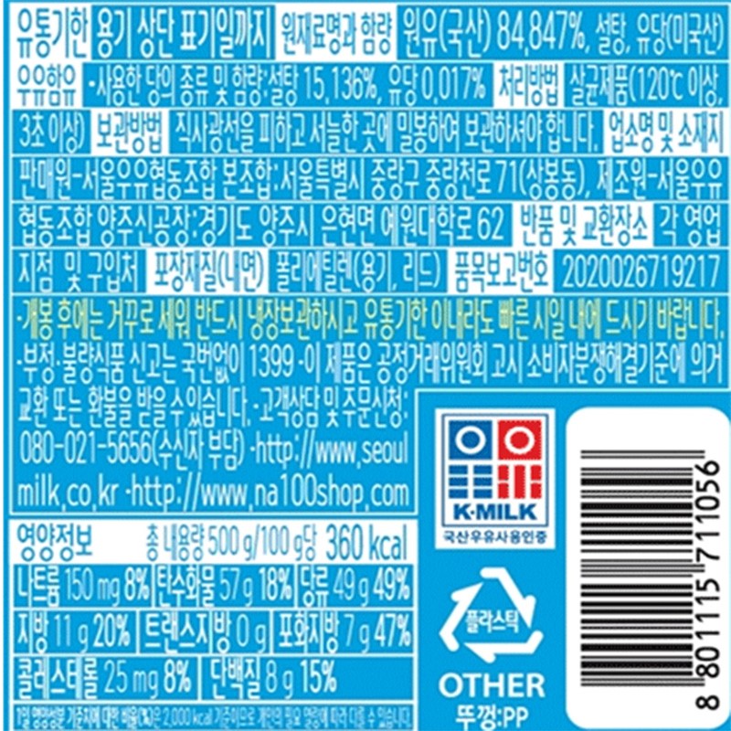 서울우유 연유(튜브) 500g