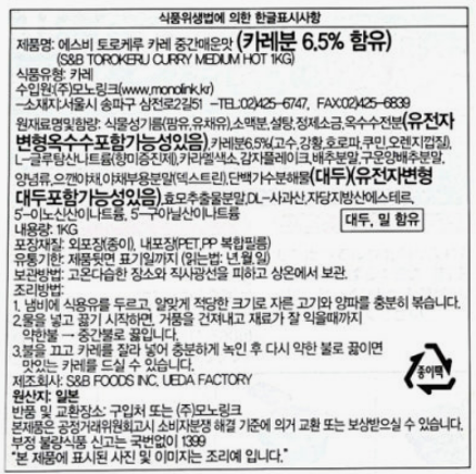 에스비 토로케루 카레(중간매운맛/고체) 1kg