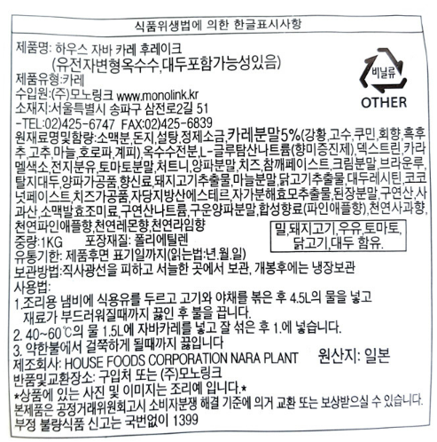 하우스 자바카레(후레이크) 1kg