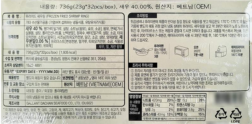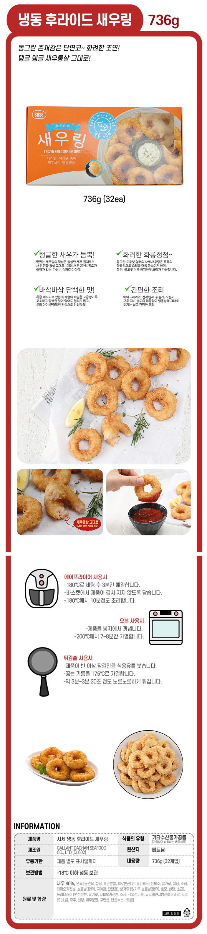 사세 후라이드 새우링(23g*32) 736g
