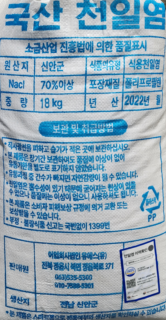 해랑 신안 천일염(국내산/간수뺀 22년산) 18kg