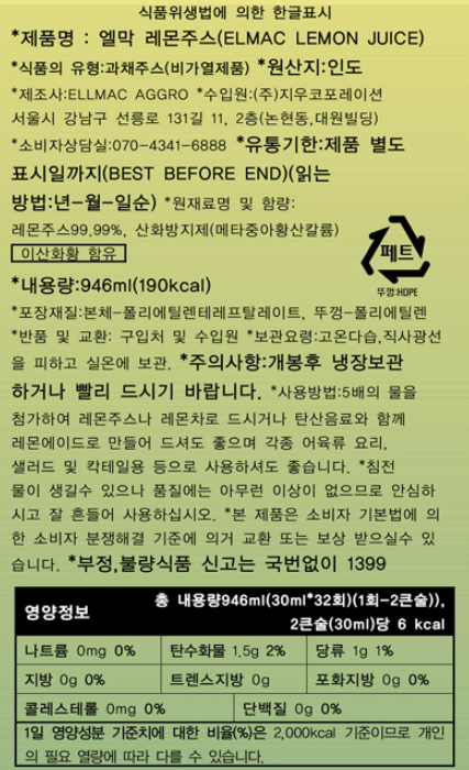 엘막 레몬주스 946mL