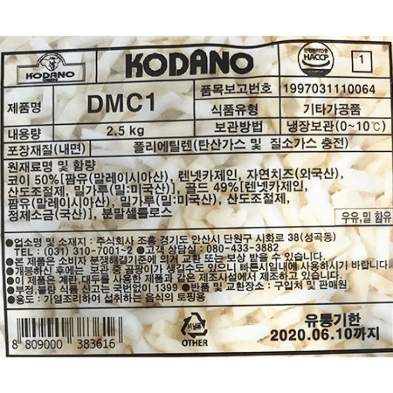 코다노 피자치즈DMC1 2.5kg