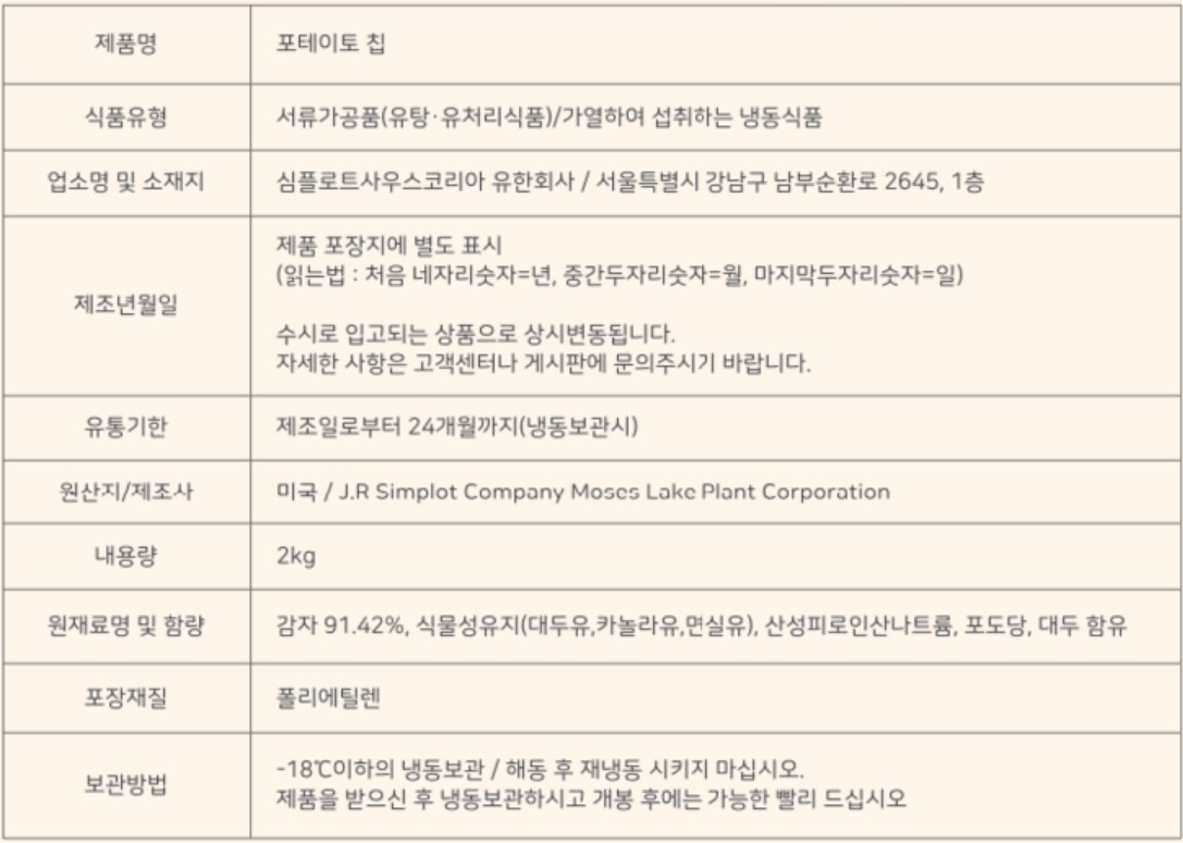 심플로트 포테이토칩 2kg