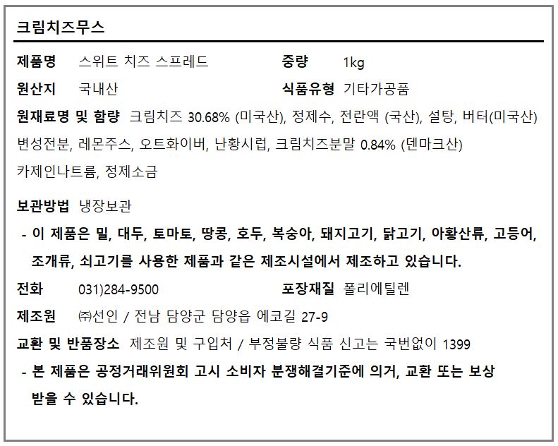선인 크림치즈무스 1kg