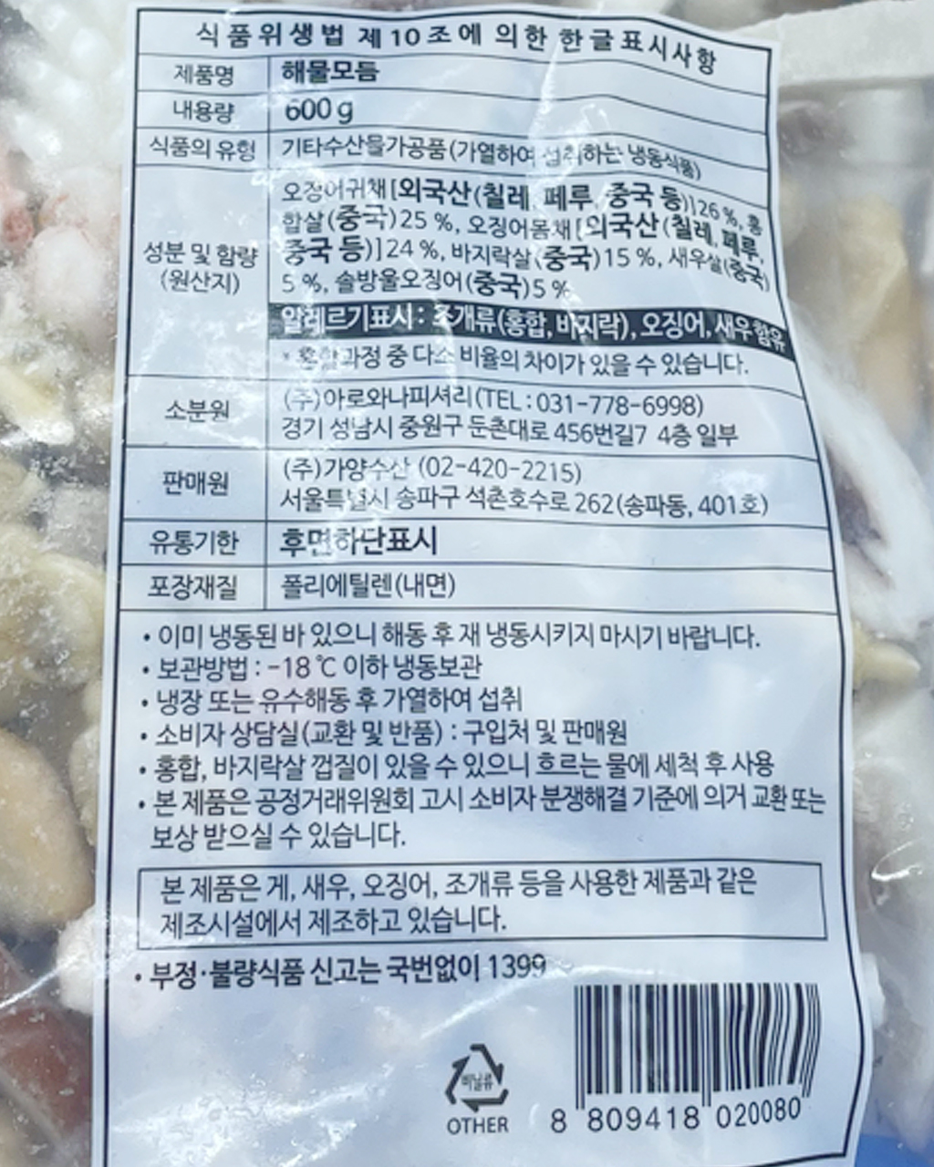참 해물모듬 600g