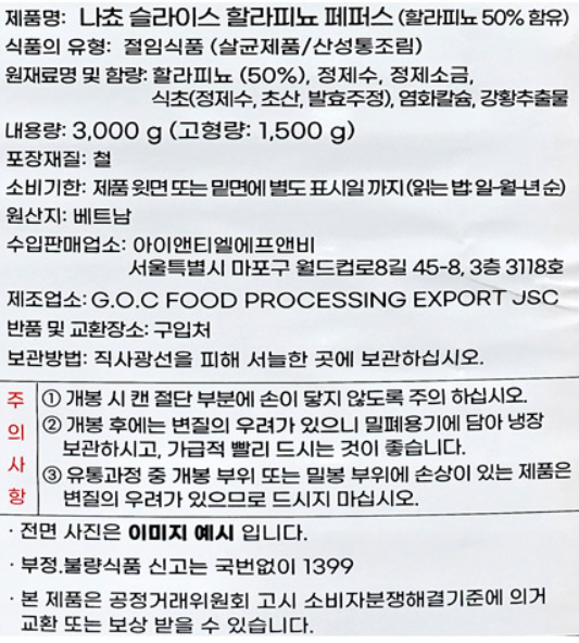 지오씨팜 나쵸 할라피뇨(슬라이스) 3kg