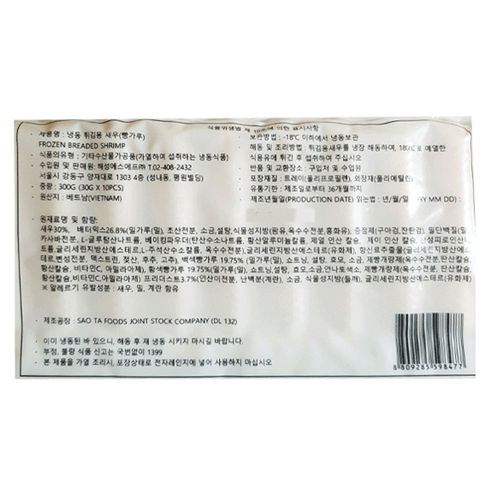 해성 빵가루새우(머리제거 30g*10) 300g