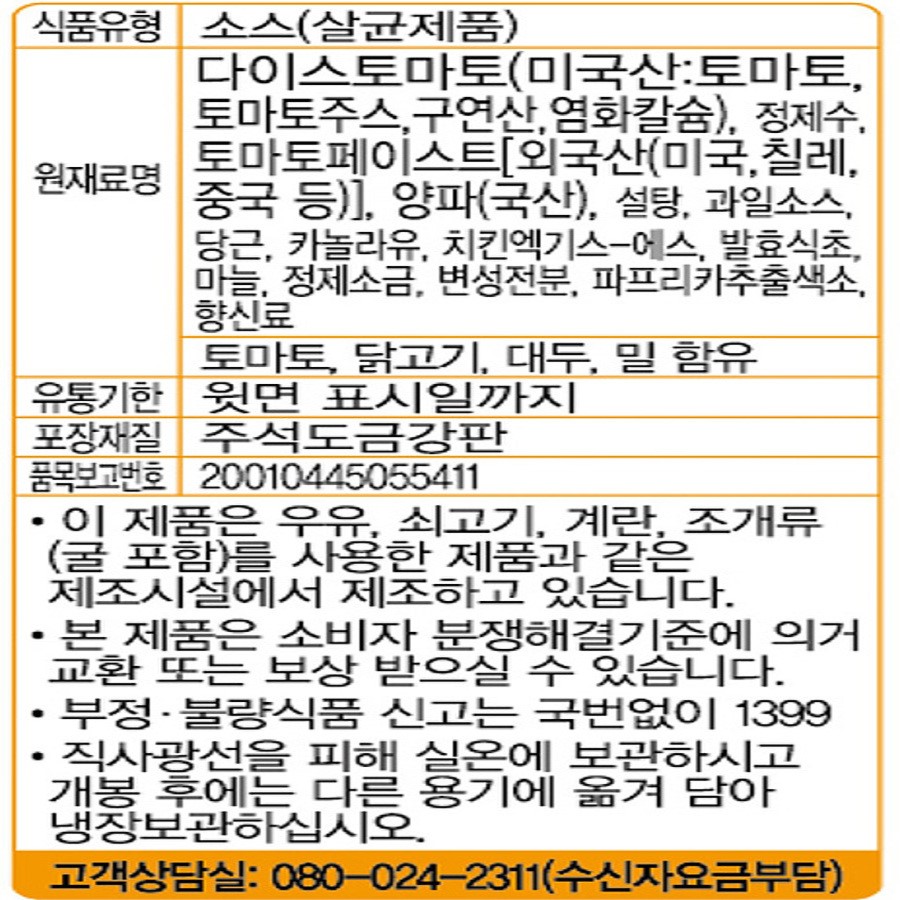 오쉐프 스파게티소스 3kg