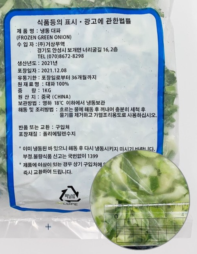 글로벌냉동 대파(슬라이스/5mm) 1kg