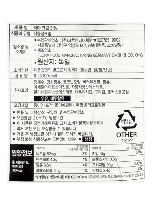 라마 휘핑크림 1L