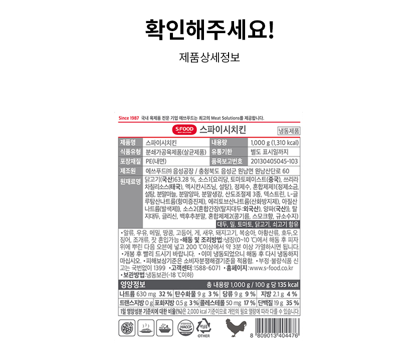 에스푸드 스파이시치킨 1kg