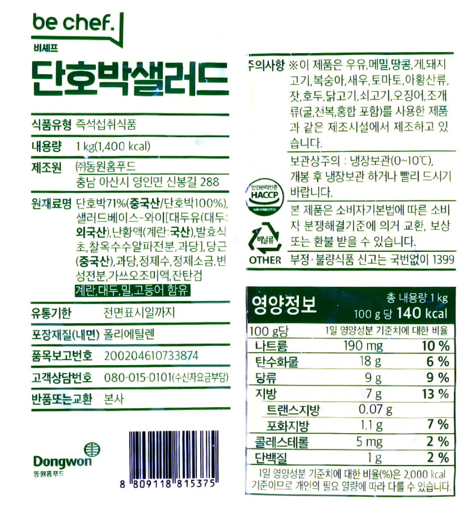 비셰프 단호박샐러드 1kg