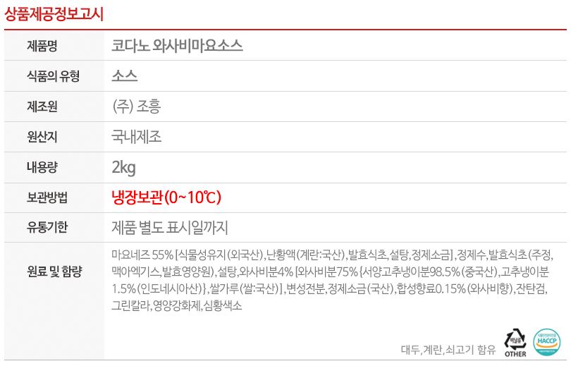 코다노 와사비마요소스 2kg
