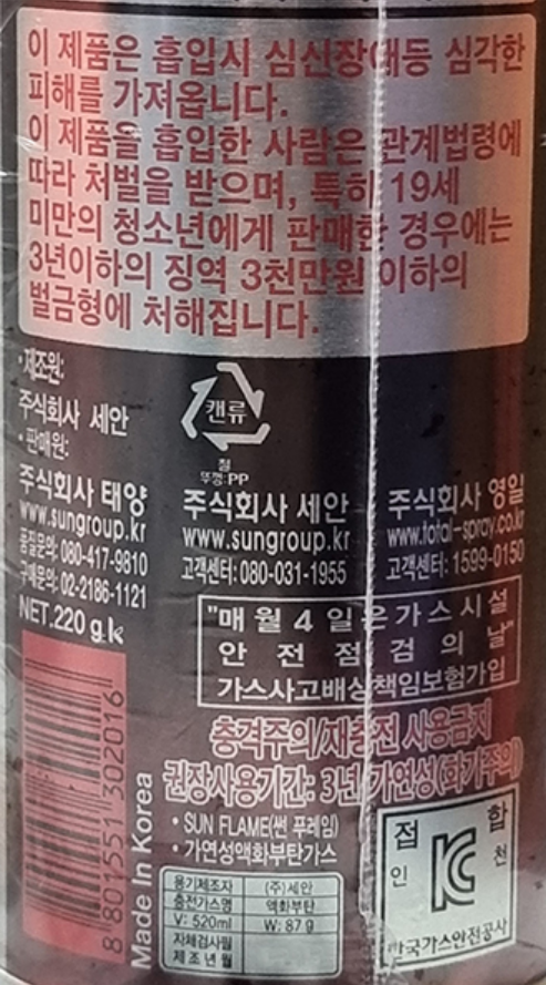 하이썬 부탄가스 220mL*28입