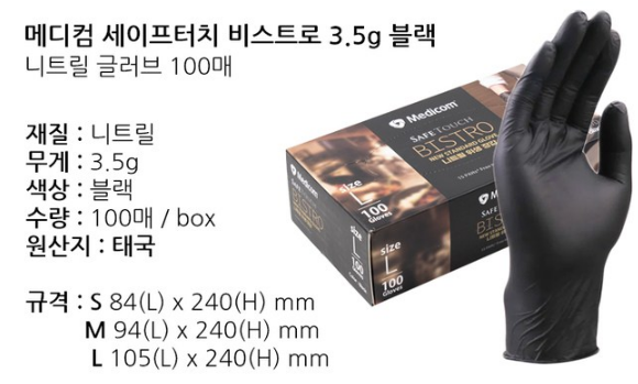 메디컴 비스트로 니트릴장갑(블랙/소형)100매