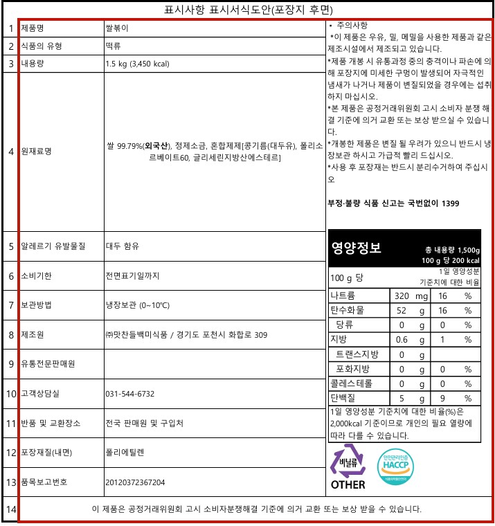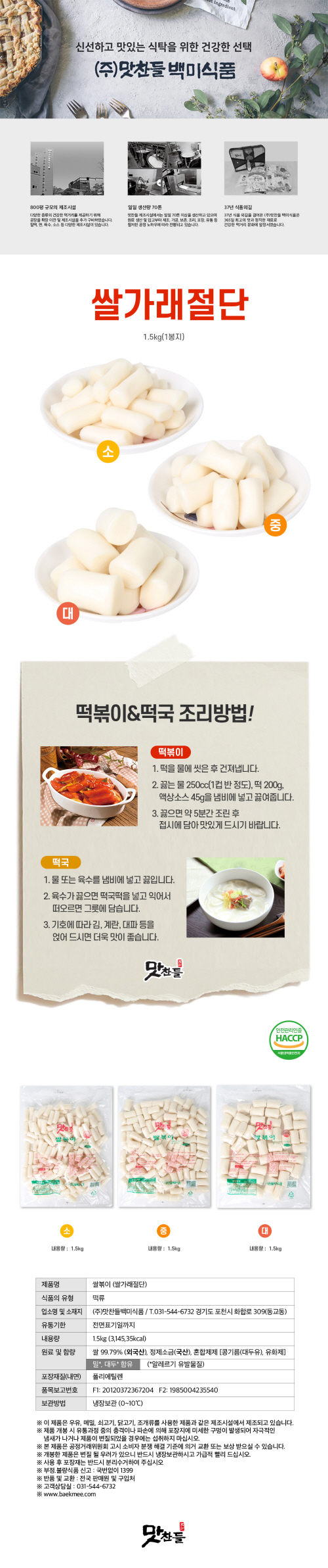 맛찬들 쌀떡볶이떡(가래절단/중) 1.5kg