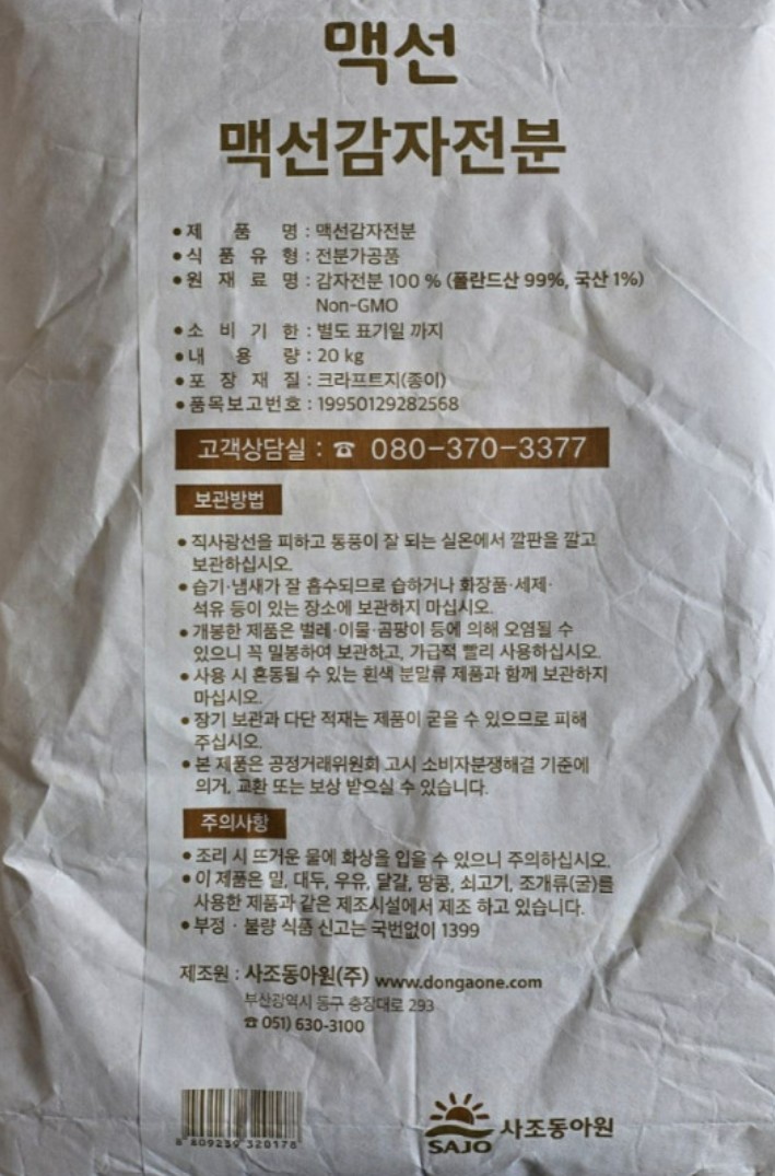 맥선 감자전분(100%) 20kg