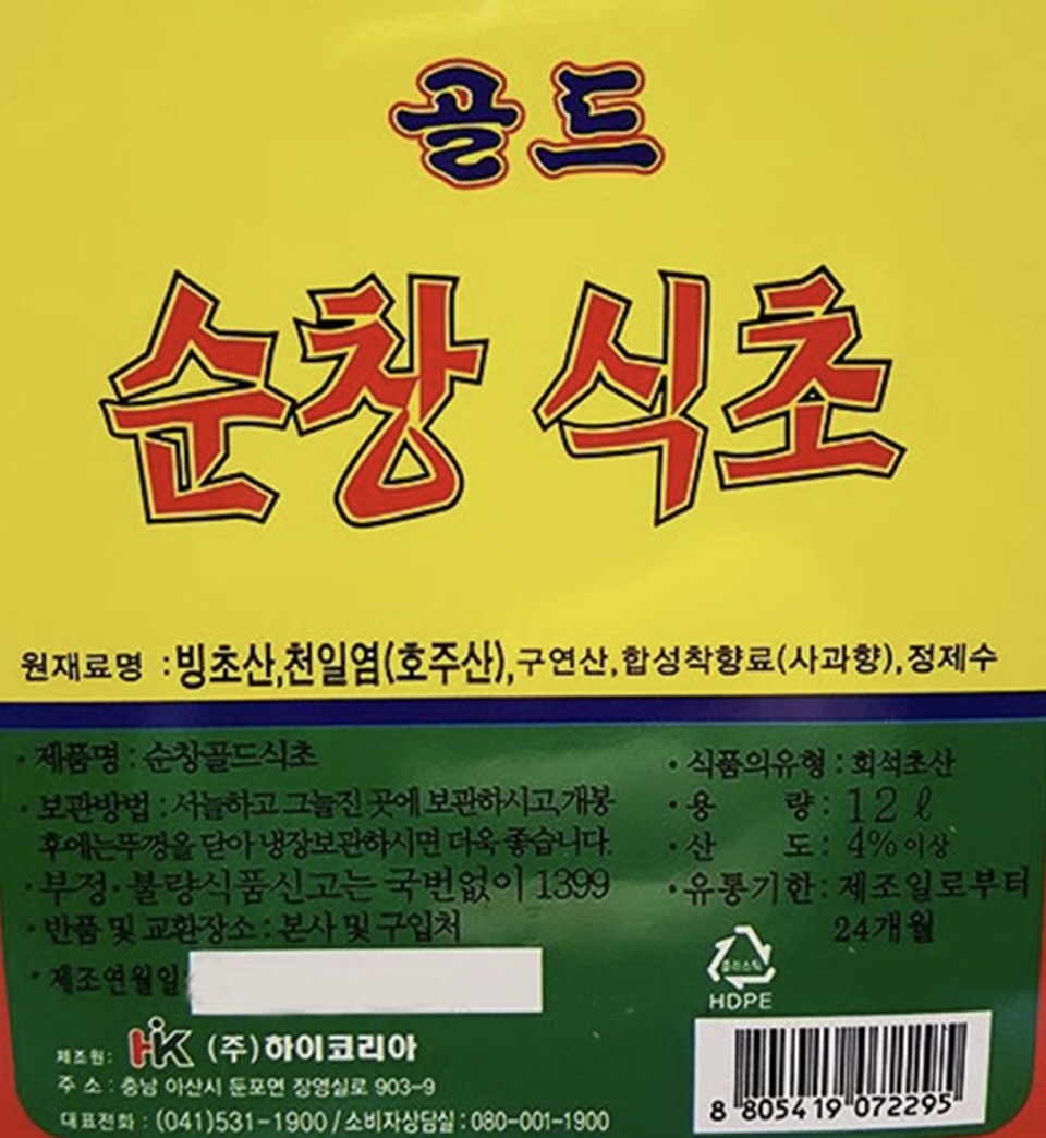 하이코리아 순창식초(골드) 12L