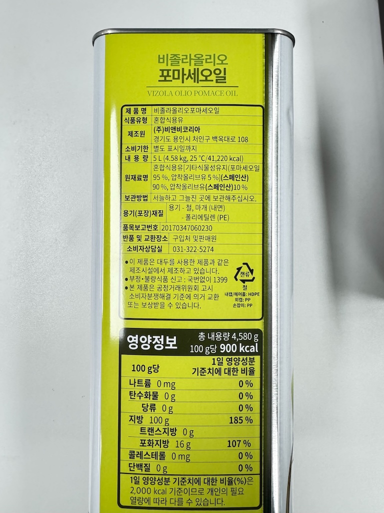 비졸라 포마세(포마스) 올리브유 5L