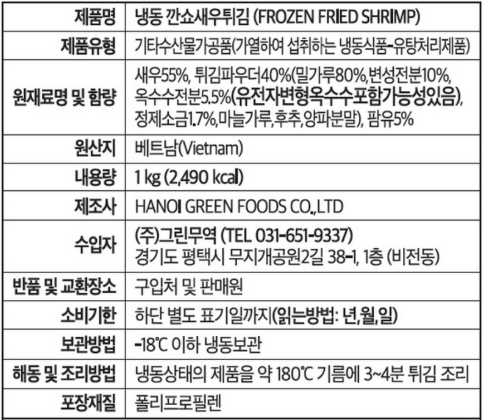 글로벌냉동 깐새우튀김(90-120미) 1kg