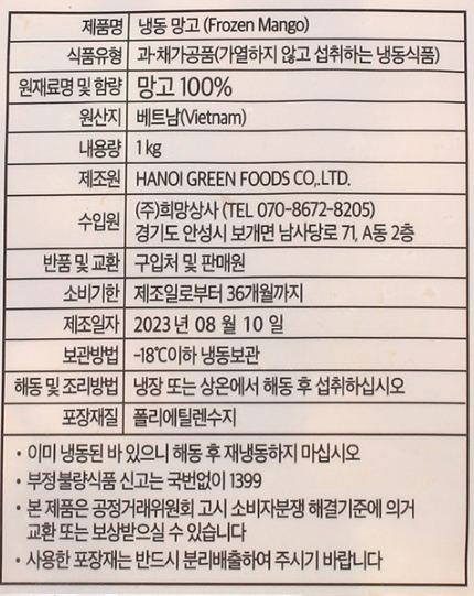 글로벌냉동 망고다이스(2.5cm) 1kg