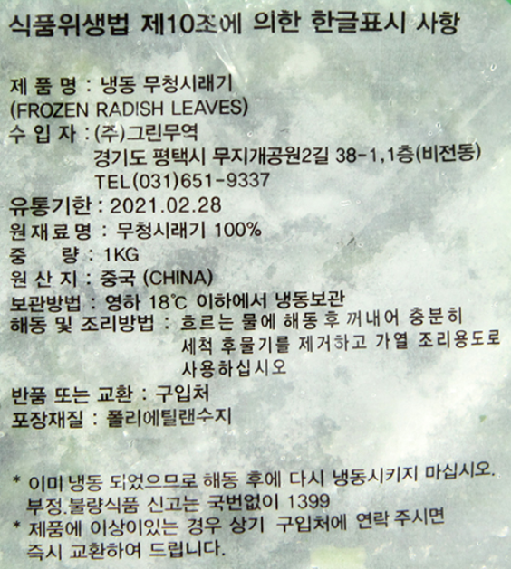 글로벌냉동 무청시래기(3-5cm) 1kg