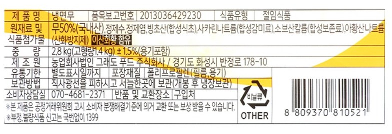 그래도푸드 냉면김치(흰색) 2.8kg